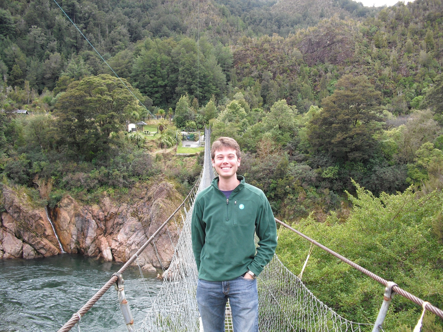 On the Buller Gorge Swingbridge, New Zealand, August 2009.